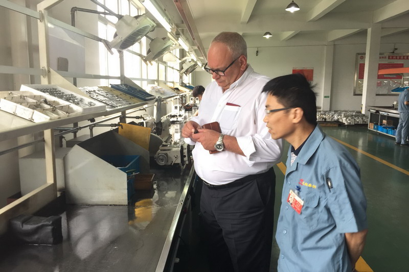 继3月31日,上工申贝集团与汇宝科技集团签订合作框架协议以来,通过多次对接洽谈,基于德国杜克普技术的中厚料机型相关的对接工作正在有条不紊的进行中。此次,作为上工(欧洲)控股有限责任公司杜克普爱华股份公司现任总经理的Dietrich Eickhoff 陪同张董、方总一同实地考察了汇宝的公司环境、生产状况、管理条件、工艺水平和制造能力等,并作了现场指导。在进行一番考察之后,来访的三位领导对公司各方面的现状表示满意,对双方今后的合作充满信心。