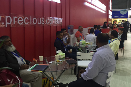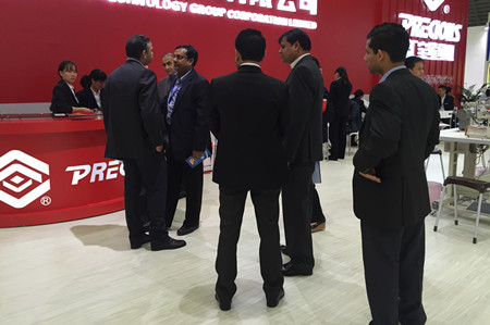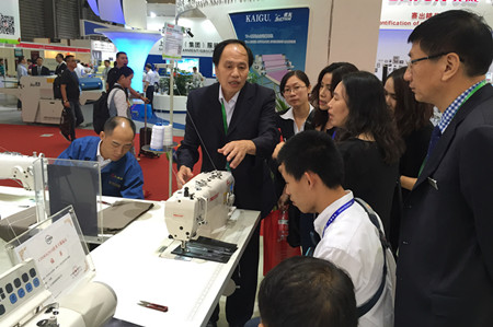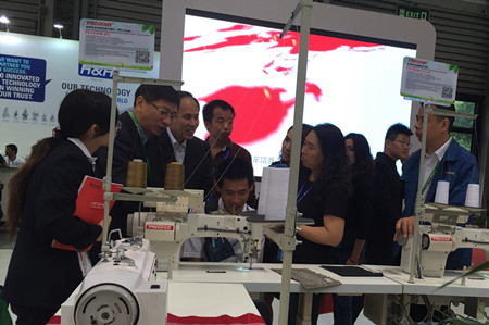 汇宝展台,人头攒动,集多项专利技术于一身的各系列机型吸引了众多客户驻足观赏、落座试车、欣然提问、满意认可。特别是PC9312 -D4 智能一体型电脑上下复合送料厚料平缝机。此款产品刚被认定为CISMA2015优秀主题展品,其首创的压脚提升轴和压脚摆动轴全密封内置设计、首创的集成内置式自动抬压脚装置,丰富了功能、美化了外观,受到客户的特别青睐。