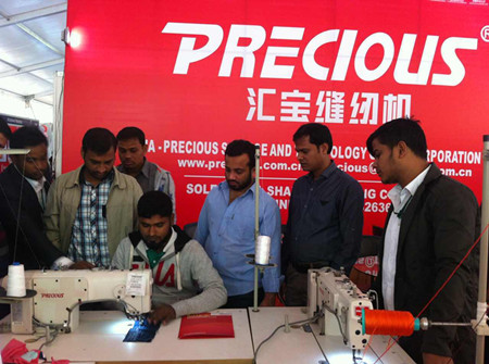 1月13日,汇宝缝纫机亮相为期四天的第15届孟加拉国际纺织机械展。展台客户络绎不绝,现场洽谈随处可见,成绩喜人,不少客户当场下单。