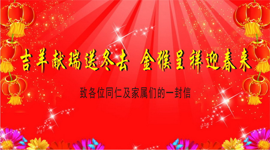吉羊献瑞送冬去,金猴呈祥迎春来--致各位同仁及家属们的一封信