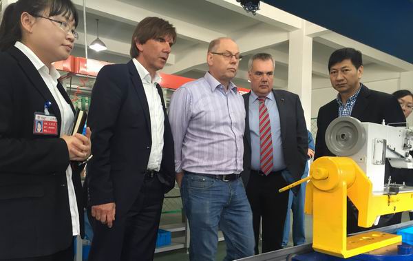 MICHAEL KLILIAN总裁一行重点考察了汇宝的上工厚料机生产车间,对汇宝集团的生产环境和管理水平比较满意,并强调,首批“DA”订单必须按照德国标准保质保量完成,期待后续合作更加顺利。